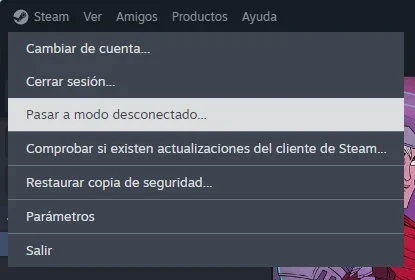 En el menú superior, presioná Steam -> "Pasar a modo desconectado" -> Confirmar
