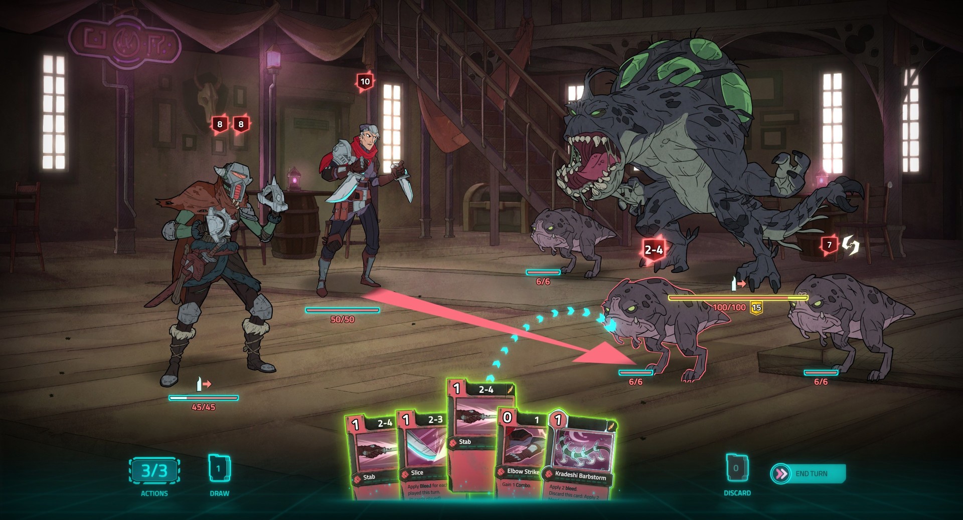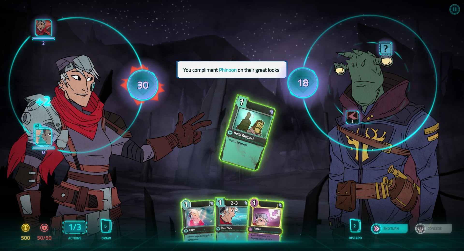 Each character has unique negotiation and combat decks to draft from. Get powerful item cards from fallen foes, or as rewards.